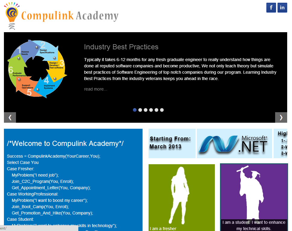 cats academy: Programming language: PHP Framework: JavaScript, Modernizr Video player: MediaElement.js CMS: WordPress